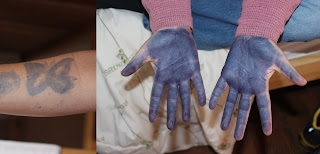 | My tat is the one on the left – butterfly; Rebecca’s hands were stained with the ink. |