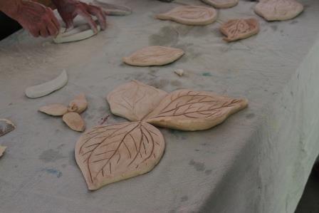 | Some of the clay leaves in process |